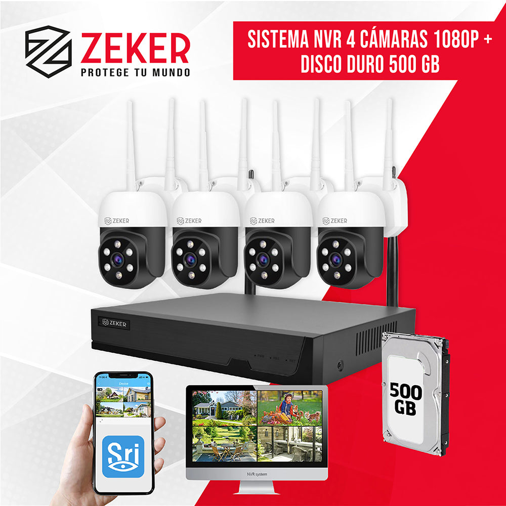 Kit NVR 4 Cámaras PTZ 2MP + Disco Duro 500GB Zeker